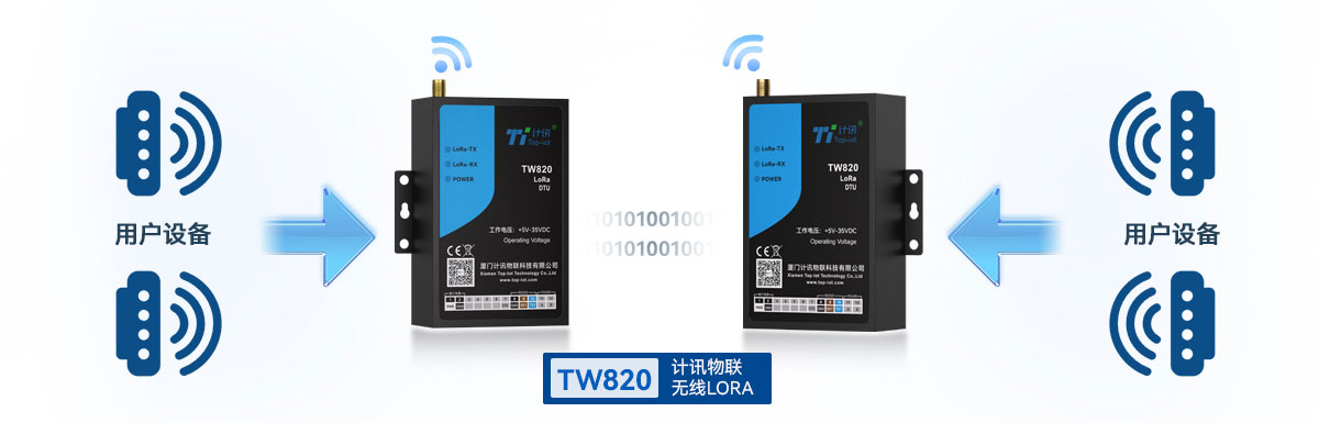 点对点通信, 串口设备通过lora dtu TW820实现点对点数据传输。