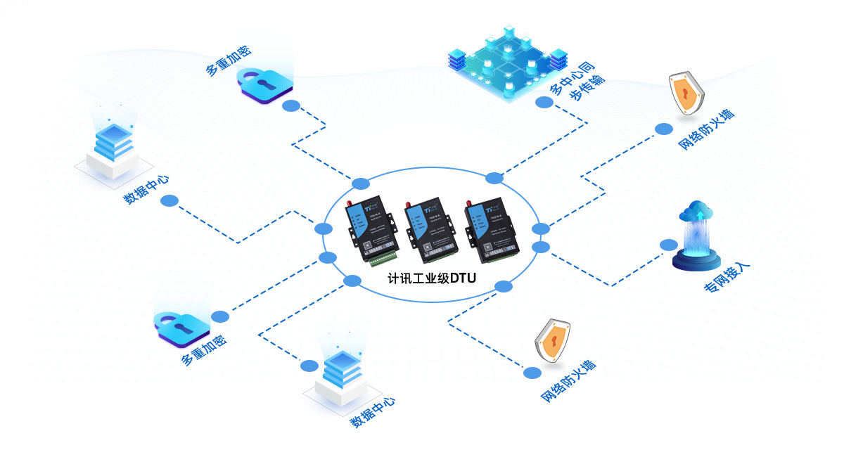 支持运营商专网接入并指定IP,享受金融级数据安全标准;支持TCP server功能,支持根据域名和IP地址访问数据中心;采用多中心发送机制,数据可同时发往多达5个中心,多级数据显示更直观,便于同步获取数据,实现高效管理;在专网的基础上再增加一层加密方式传输,充分保障交易数据、管理数据的安全性、准确性。