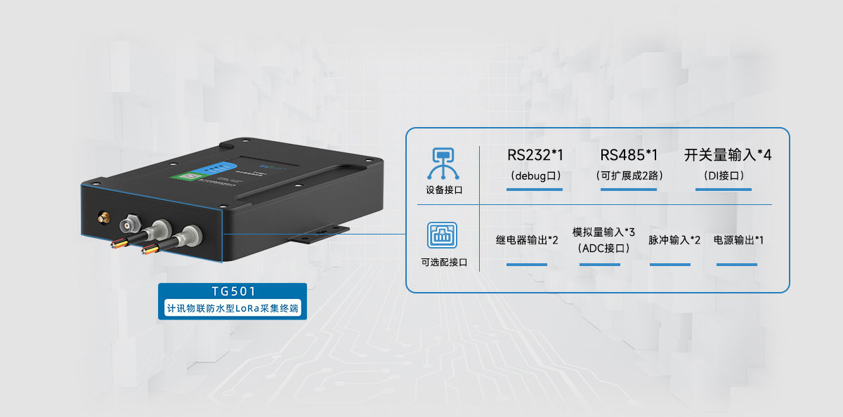 防水型Lora采集终端 |TG501-B6-8TG501-B6-8,防水型lora数据采集终端RTU,IP68高等级防护等级,支持lora组网低功耗长距离传输,同时支持4G无线通信,AES数据加密安全传输,丰富协议性能稳定,远程高效管理。