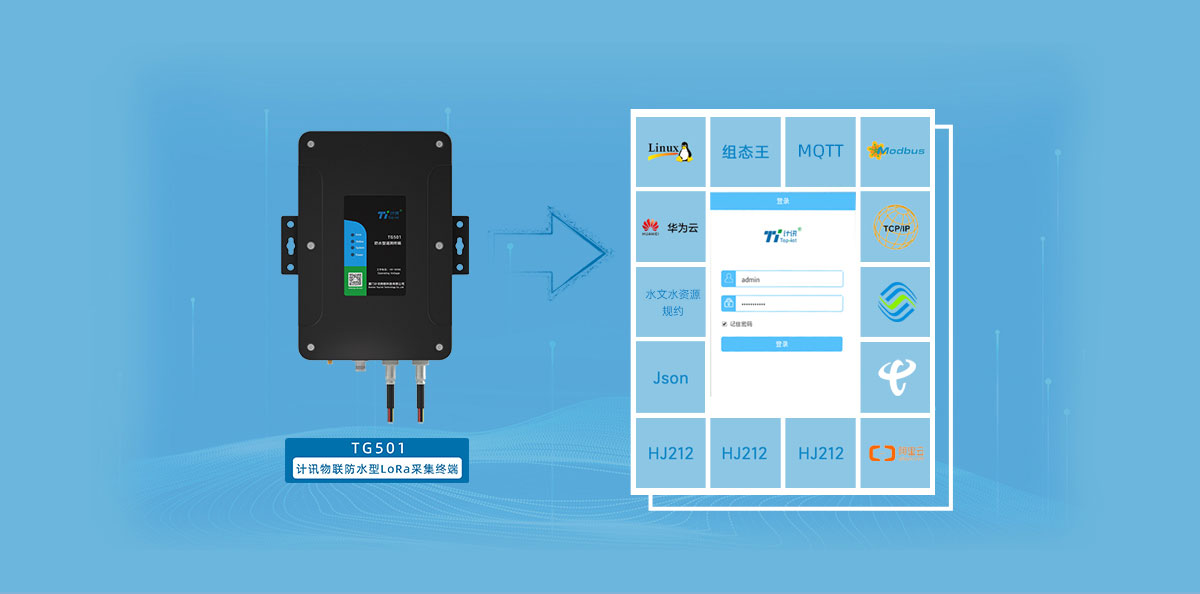 防水型RTU TG501-B6具备低功耗、本地无线组网、数据采集、远程控制、本地联动、LORA/4G通信等多功能于一体,广泛用于工业、水利、给排水、气象、农业、石油、热力、等行业。