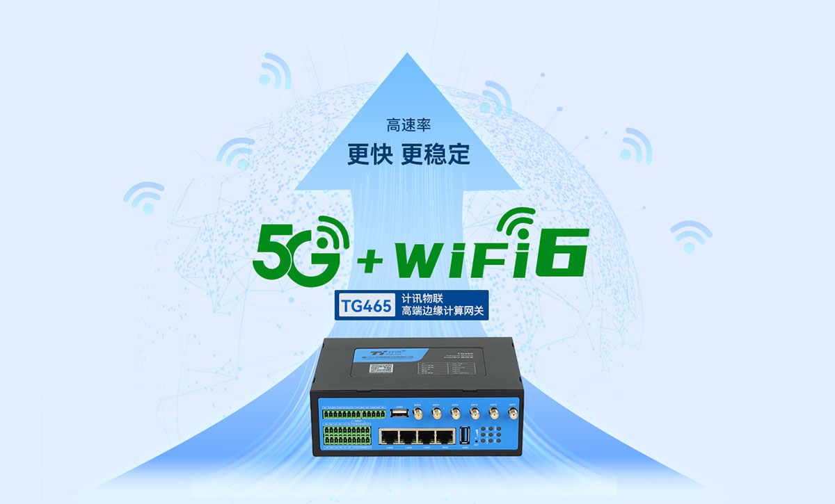 TG465高性能物联网网关,5G+WIFI6高速网络,四核64位Cortex-A55,2GRAM、16GFLASH,1TOPS NPU,主频高达2GHZ,超强的运算能力,边缘计算,国密加密,HDMI可选、固态硬盘NVMe SSD、单模双卡可选。