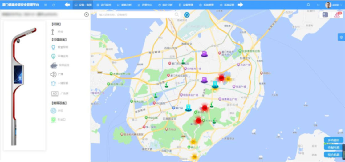 ★GIS一张图,设备总览,集中展示步道设备的分布情况。