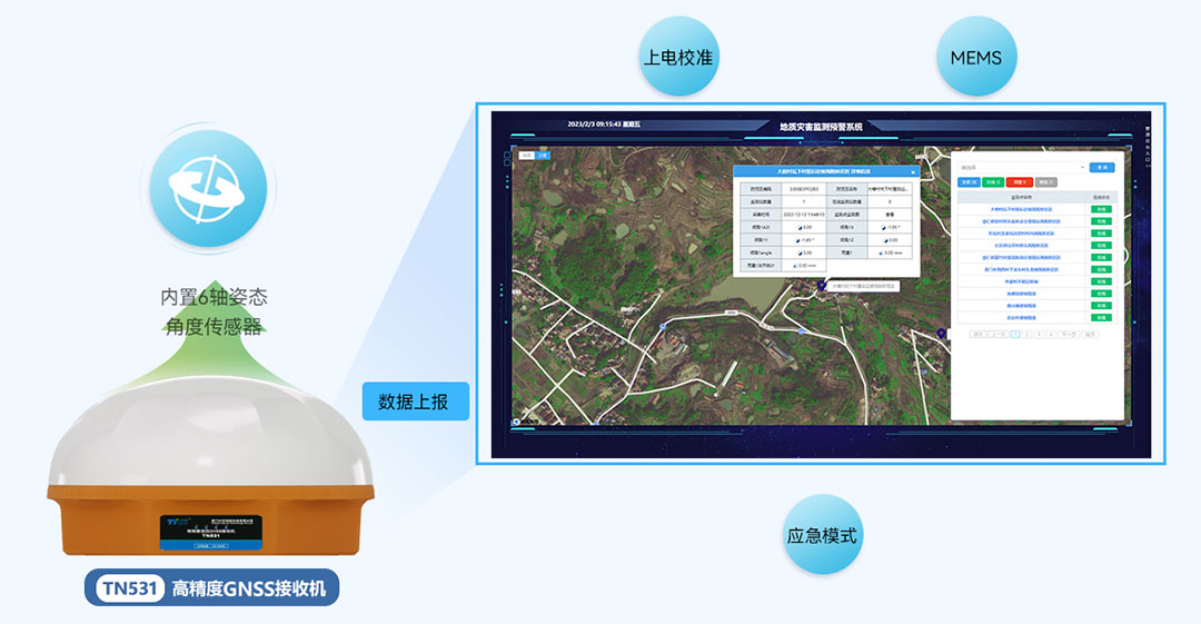 高精度一体式GNSS接收机 | TN531高精度GNSS接收机TN531,多星多频北斗 GPS GAL GLONASS,内置GNSS 4G天线,收发一体化,应用于位移监测、桥梁监测、边坡监测、大坝安全监测、危房监测、基坑监测、尾矿库监测等自动化场景